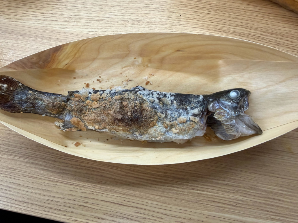 さっきまで生きていた命をいただくことに、少しの申し訳なさはありました。でも、それ以上に「美味しそう!」という本能が勝ってしまいます。 皮にまぶされたたっぷりの塩、ふわっふわの白い身。焼きたて特有の香ばしさは、スーパーの魚とは比べものにならないほど力強い味でした。