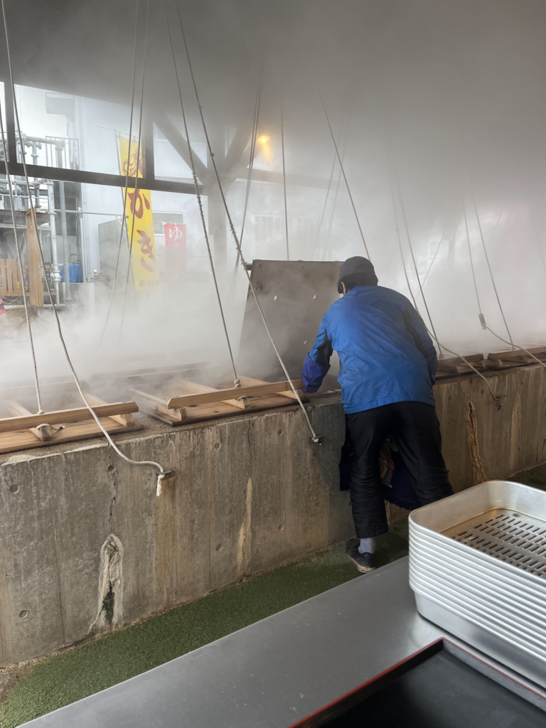 • 温泉地の洗礼: お店に近づくにつれ、あたり一面に漂う強い硫黄の香りに「温泉地に来た!」という実感が一気に高まります。