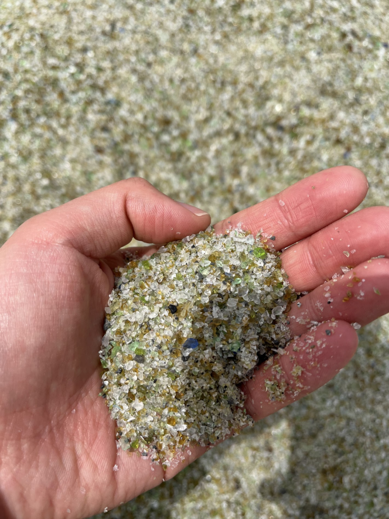 • 幻想的な輝き: 長崎空港のすぐ近くにある、再生ガラスから作られたという珍しい砂浜へ立ち寄りました。