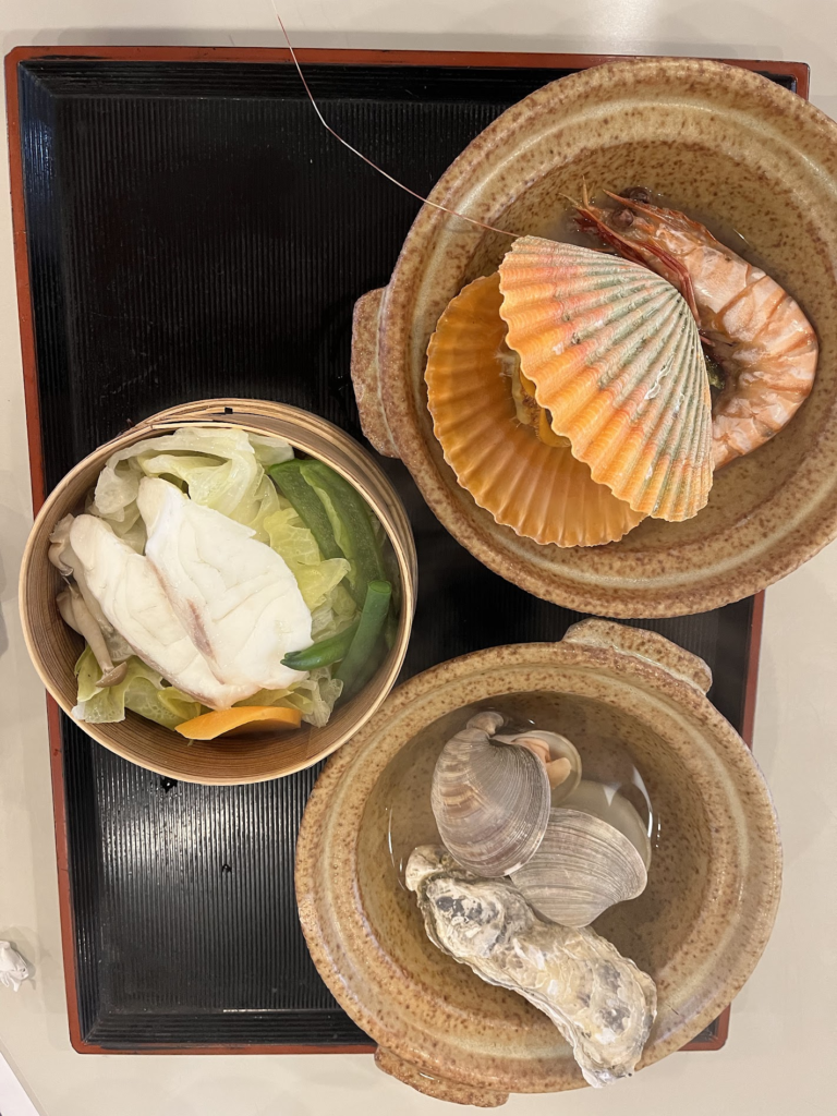 • ワクワクの蒸し体験: 温泉の熱を利用して蒸し上げるスタイルは初めての経験。ずらりと並ぶ新鮮な海鮮や野菜から好きな具材を選び、目の前で蒸してもらう時間は、待っている間もワクワクが止まりません。