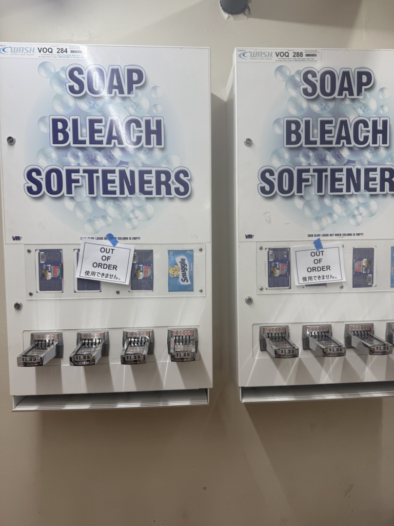 - 支払い:洗濯機・乾燥機はクレジットカード対応。洗剤自販機は現金のみ。