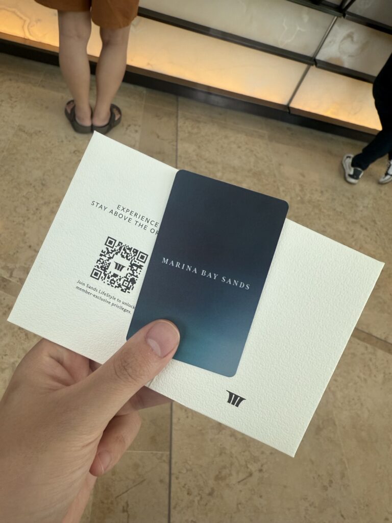 このカードさえあれば、正式なチェックイン時間(午後3時)よりずっと早くから、57階のインフィニティプールやフィットネス、展望台が利用できるという特権をゲットしました。