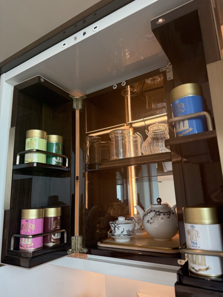 お部屋は広々としており、室内にはTWGの紅茶(一部有料)やカクテルセット(有料)が置かれており、非日常的な空間に心が躍りました。